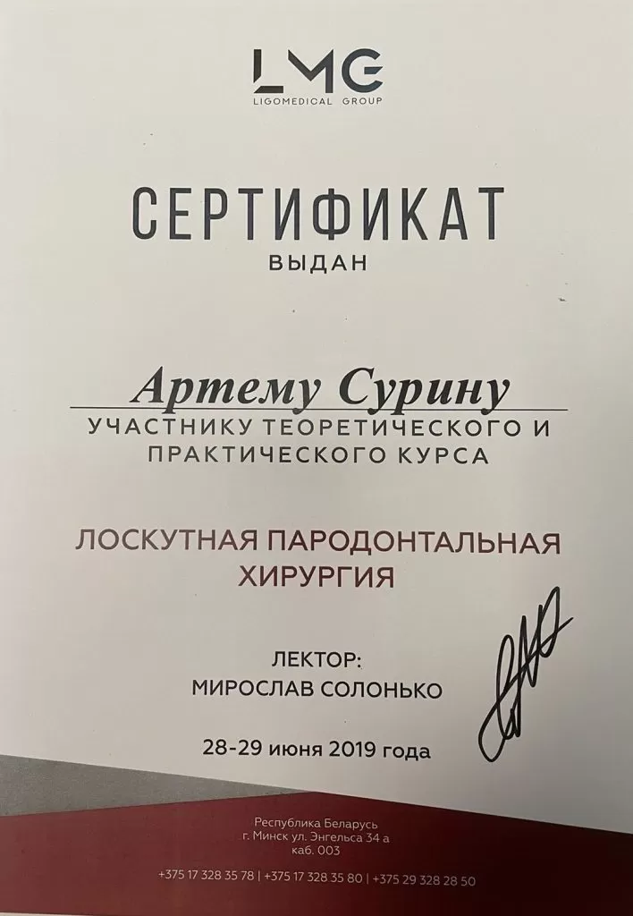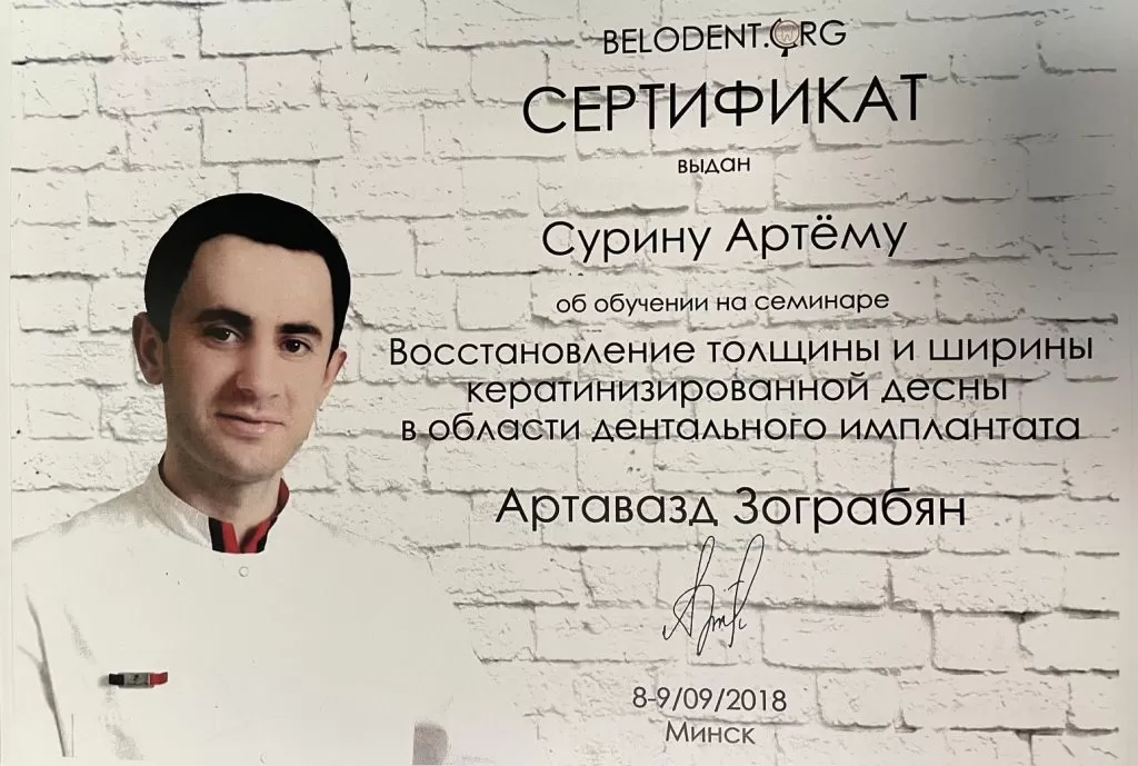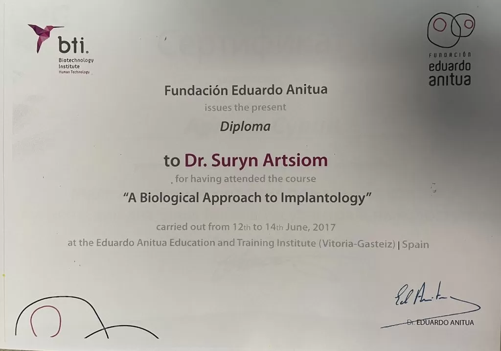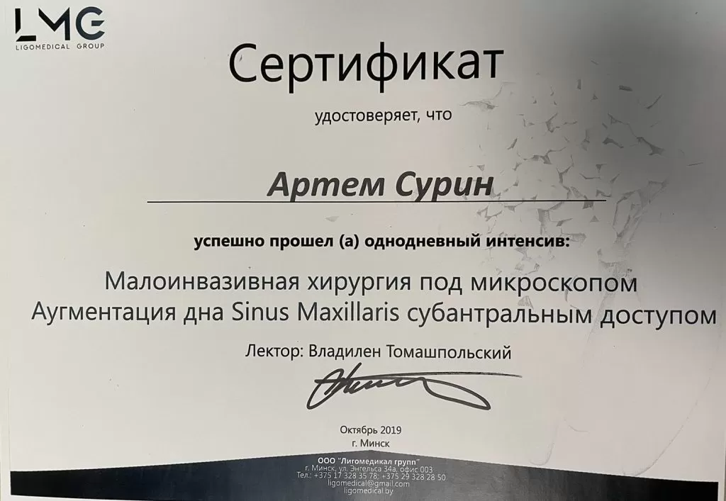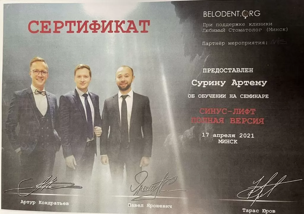 Кандидат медицинских наук, автор более 50 научных работ (в том числе 1 патента). Стоматолог-хирург первой квалификационной категории, стоматолог-ортопед первой квалификационной категории, имплантолог, член «Ассоциации оральных и челюстно-лицевых хирургов Республики Беларусь, действительный член ICMART